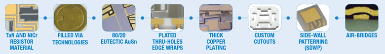 Capabilities: Side-Wall Patterning, AuSn, Au-Filled Vias, Edge Wraps, Air-Bridges, and Laser-Machined Custom Substrates